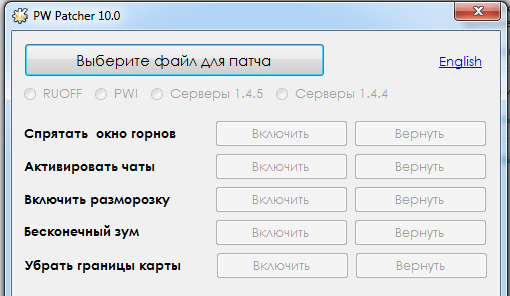 Patcher для Perfect World - Это хороший полностью функционирующий чит версии, который позволяет вам физически изменить клиент игры. Во-первых данное дополнение может удалить окно горнов, во-вторых она может активировать настройку чатов, что облегчает вам жизнь.